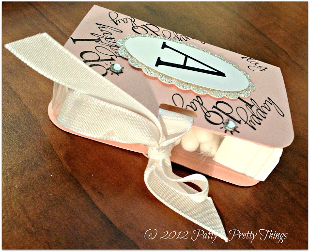 Then I scored 5/8" in the center of the paper to allow the paper to fold around the box of tic tacs.