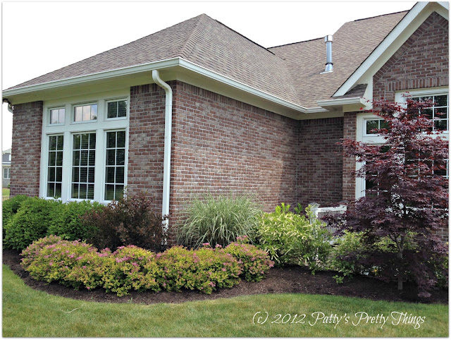Now that I am mowing the lawn, I am enjoying the yard like I never have before. It takes a few years for the shrubs to grow and I am enjoying seeing how they are filling out around the deck railing. We do not have neighbors on either side of us yet. We decided to build our home across from the golf course and not directly on it where most people want to be. Dan said golfers cuss too much (hmm, he is a golfer) and he thought I wouldn't enjoy having that going on in my backyard all the time. That was very thoughtful of him and I appreciate it.
