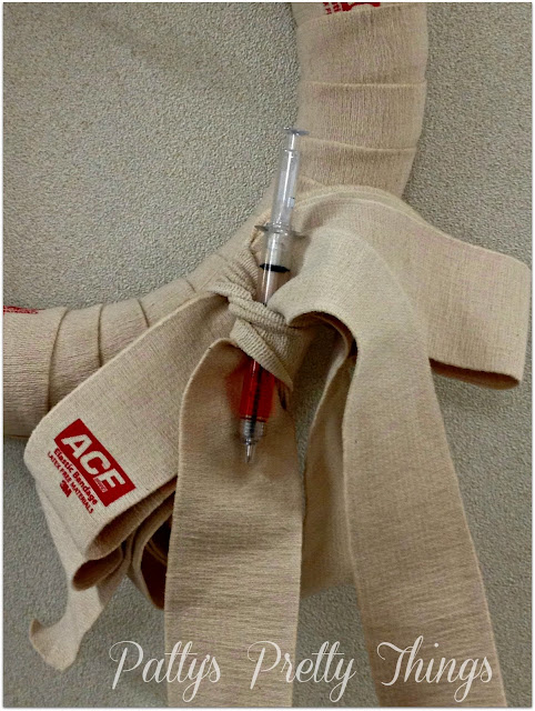 We decided we needed to spruce up the clinic a bit so we made a wreath out of Ace bandages. This wreath was made like one I made in a former posting here.