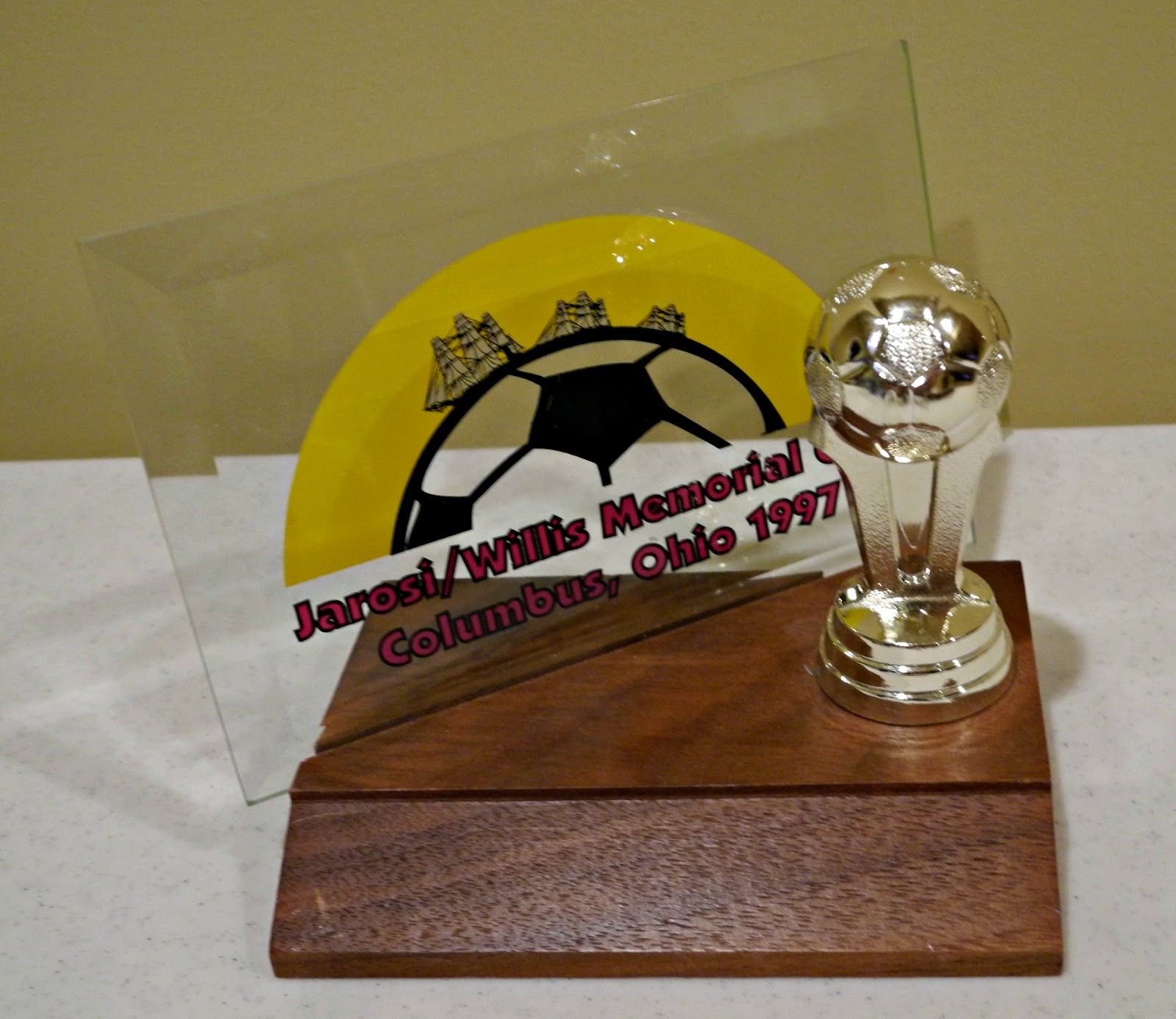 So I spray painted it a gold metallic color and it fit perfectly! It reminds me of Danny's 16 year career playing soccer.