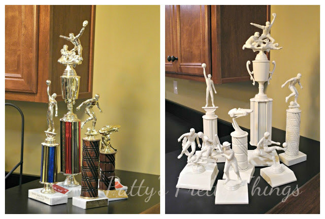 I wish that I had seen this post, before I got rid of all of my daughter's trophies. I like the way that you notice all of the textures more, after the pieces are painted. What a great idea!