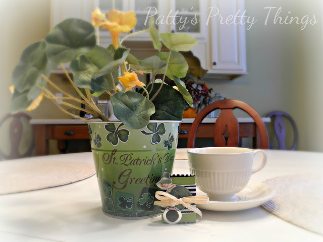 Happy St. Patrick's Day 2013. This is my second year to post about St. Patrick's Day. Last March, I showed you my St. Patrick's Day figurine and green checkered table cloth. This time I am showing you a metal bucket I picked up at Michaels and a little matchbox I made for Andria of Drawing near.