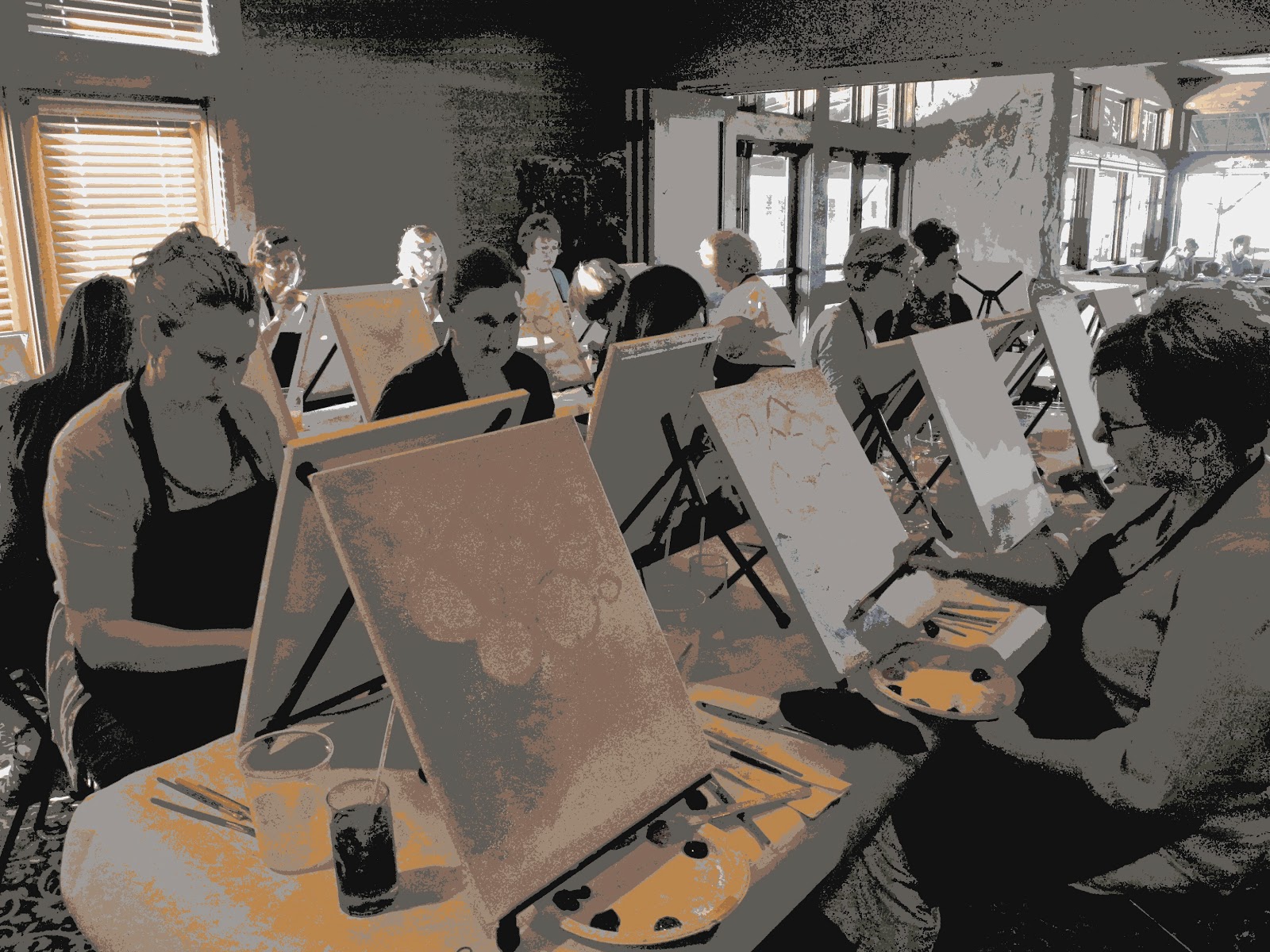 Our neighborhood association hosted a Wine & Canvas class for ladies night. It was great fun. Wine & Canvas is something that started in Indianapolis and is growing rapidly in other locations. I had heard about it for a long time so was eager to attend the class. This is my masterpiece.