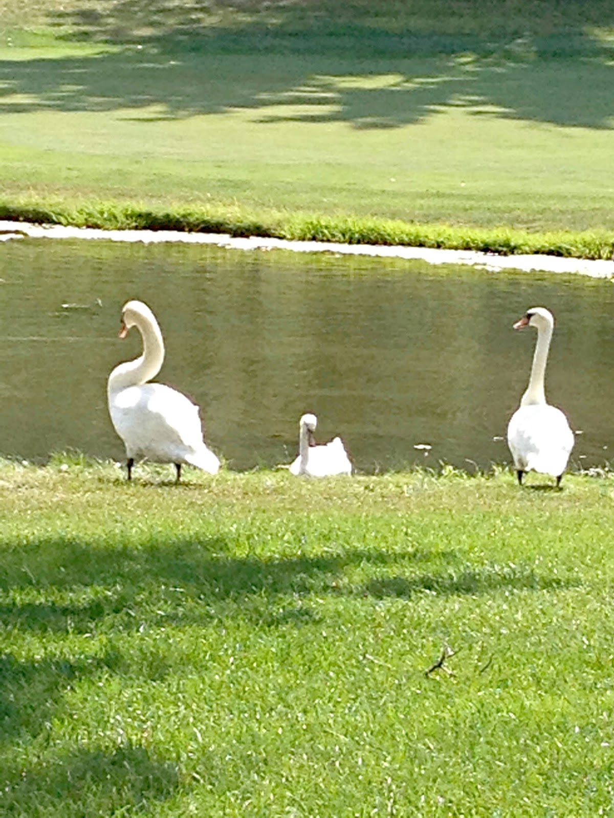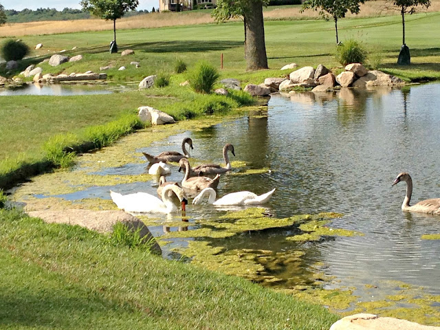 Beautiful day and outing. My husband hasn't played gold in awhile but if I get to enjoy the scenery like you and relax in a golf cart then I'd be more than happy to push him to start playing. Thanks for the idea! Love the swans!