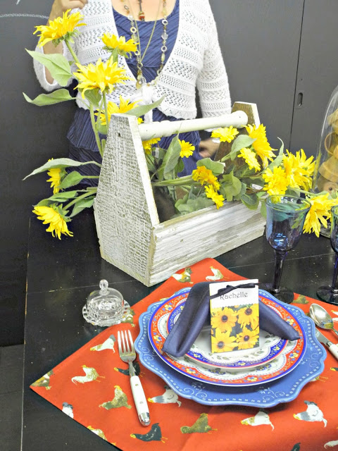 Here was the first tablescape which was for a sunflower country-themed fall lunch. They even had menus that went along with the events.