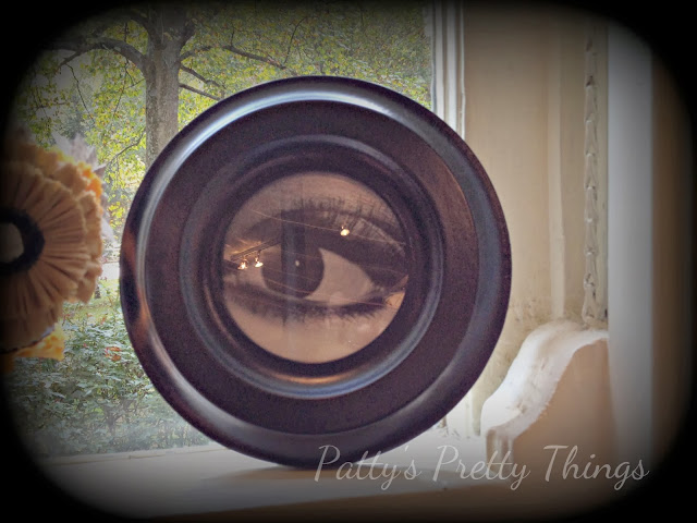Ok, so I wasn't finished with creating my Halloween decor (retirement is the greatest!) yet. When we stayed at the West Baden Springs Hotel last weekend, I saw this framed eye in the hotel gift shop. When you moved it back and forth, the eye went with you...kind of creepy.