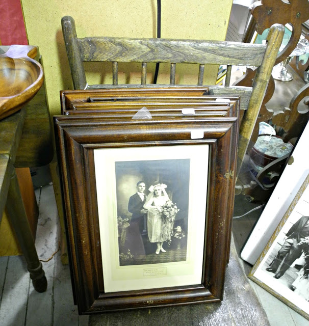 Dan and I stopped at a really great antique store in our town square. He spotted some frames he thought Ashleigh could use for her art. They were a good price and could be refinished or touched up with spray paint if needed. I didn't pay much attention to them until we got home. When I took a second look, I got excited about what was in them: old wedding photos!