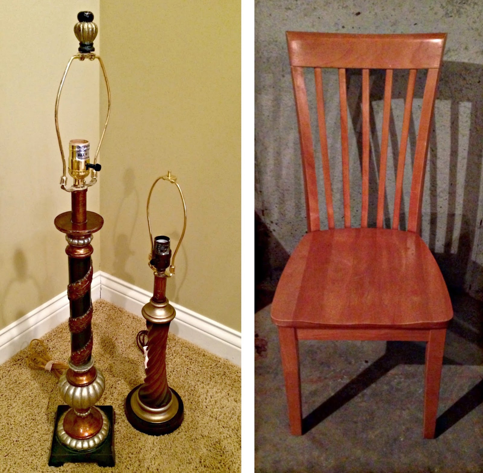 We found lamps and the dining room chairs at a Goodwill (GW) store.