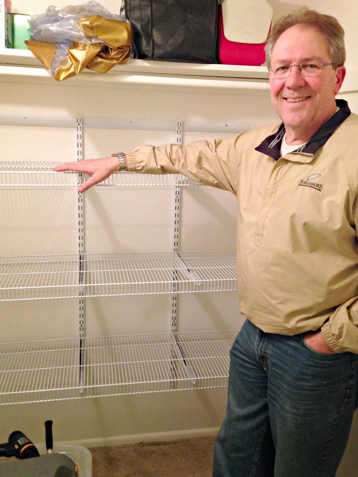 Dan installed shelves for her in a large central closet.