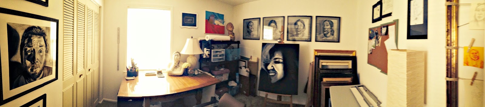 Ash sent me this panoramic view of her studio after she had hung art in the room. |
