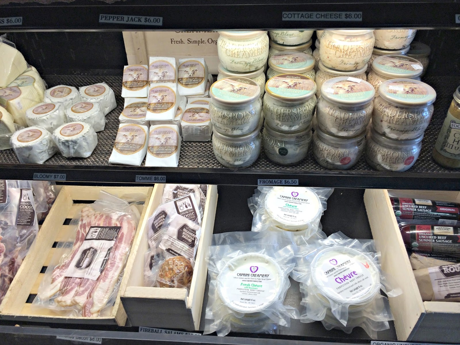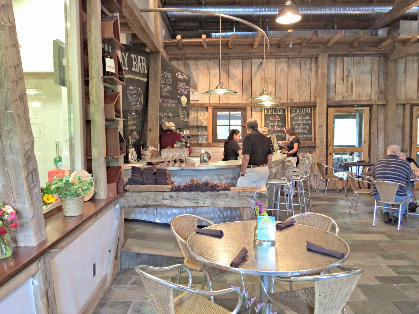 There are four historic barns from Hoosier farms on the property. The main one that houses The Loft Restaurant Creamery and Farm Store came from Bluffton, Indiana and was built in the 1860s. It now houses their farm-to-table restaurant, cheese production, dairy bar and farm store that sells their award-winning organic, 100% grassfed milks, yogurts, and cheese.