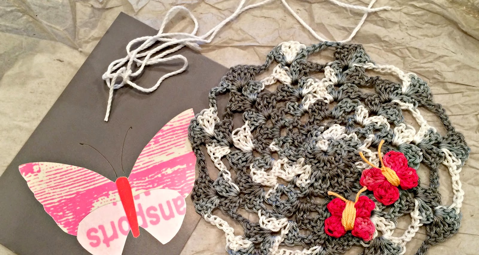 Tammy participates in stashbusting which means she uses her leftover yarn scraps to crochet small things. She crocheted this lovely doily and butterflies from her stash of leftover yarn. On her blog you will find a link to the doily crochet pattern here.