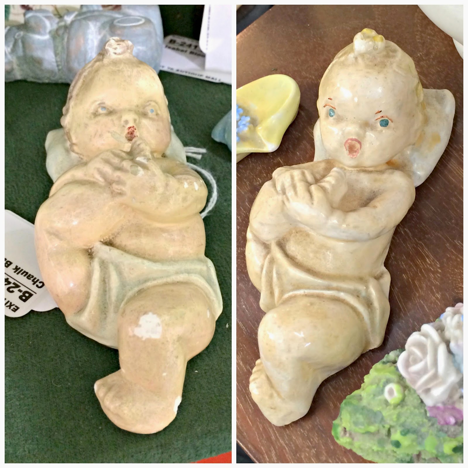I was inspired to paint this ceramic baby wall hanging that decorated Danny's nursery 30 years ago.
