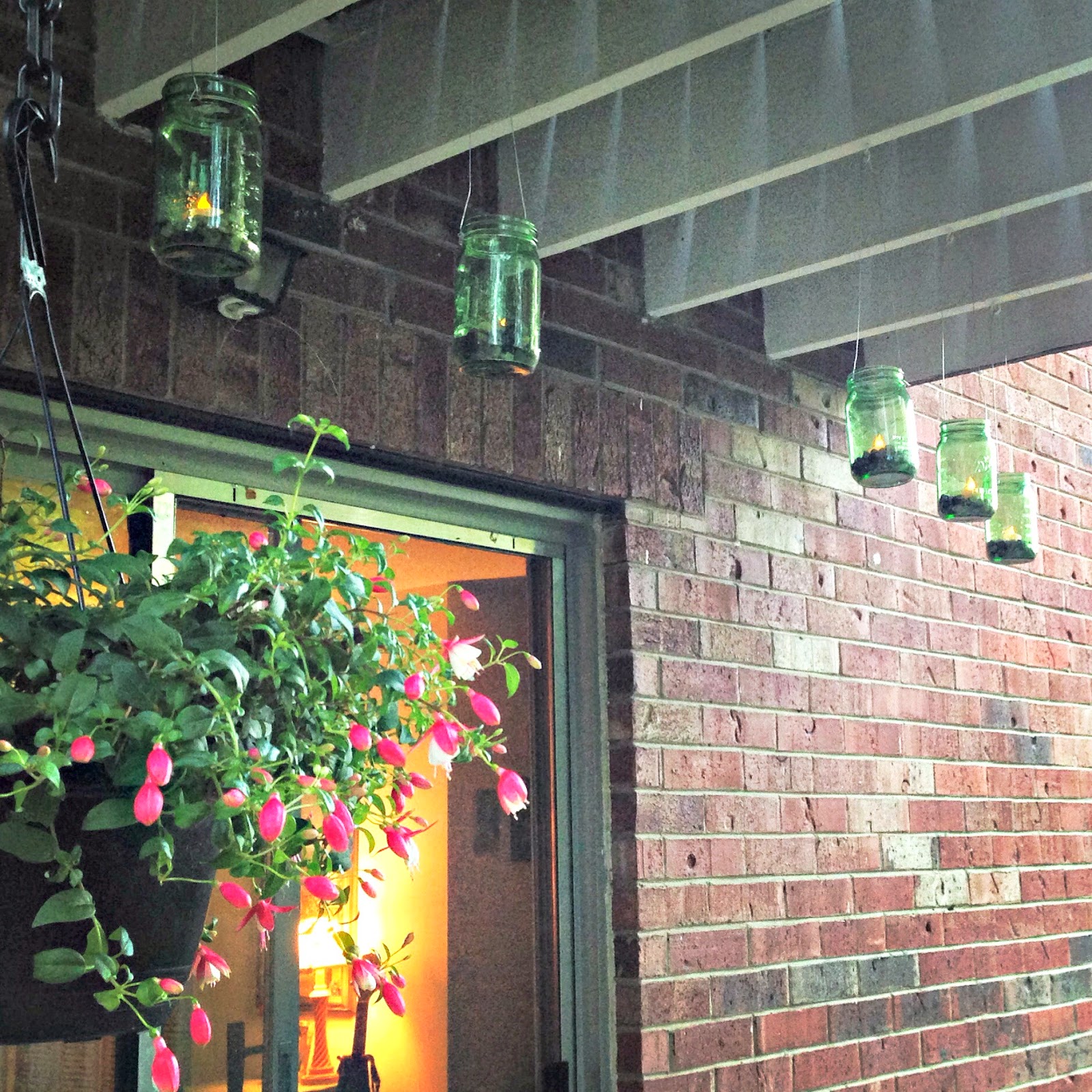 Ashleigh wanted to make lanterns for her back porch so I gave her my green Ball jars.