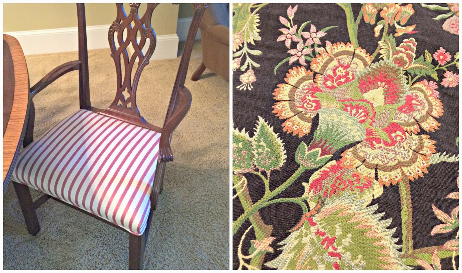 I have been putting off choosing fabric for our dining room chairs. I had thought about painting the fabric already on them but decided to reupholster with new fabric instead. I'm going to order this.
