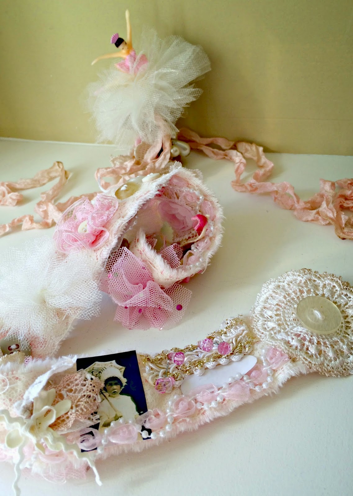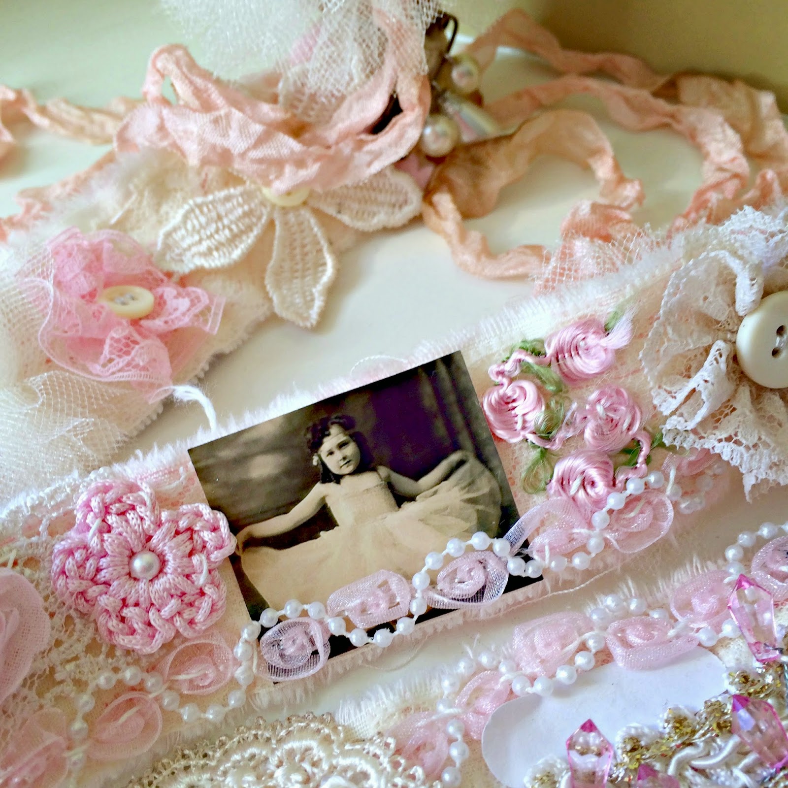 It is filled with all of the things I LOVE: tulle, ribbon, pearls, buttons, to name a few...