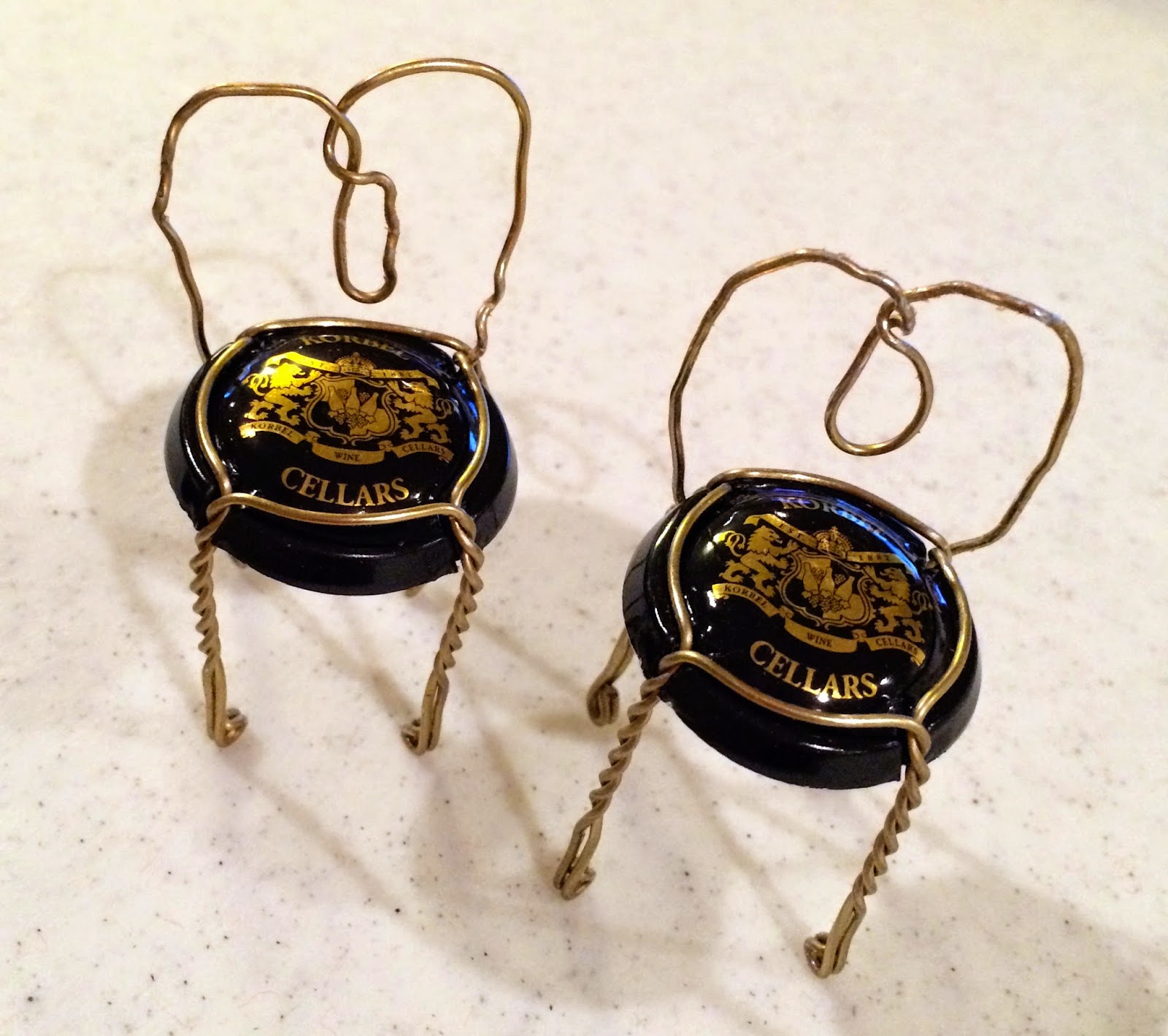 Another craft I have wanted to try for a long time was making these little chairs out of champaign cork holders. Bending the wire was more difficult than I had anticipated and they didn't turn out very well. If you want to tackle making them the instructions can be found here. I used my jewelry making tools to bend the wire. If you make them, let me know if you find an easier way to bend the wire :-).