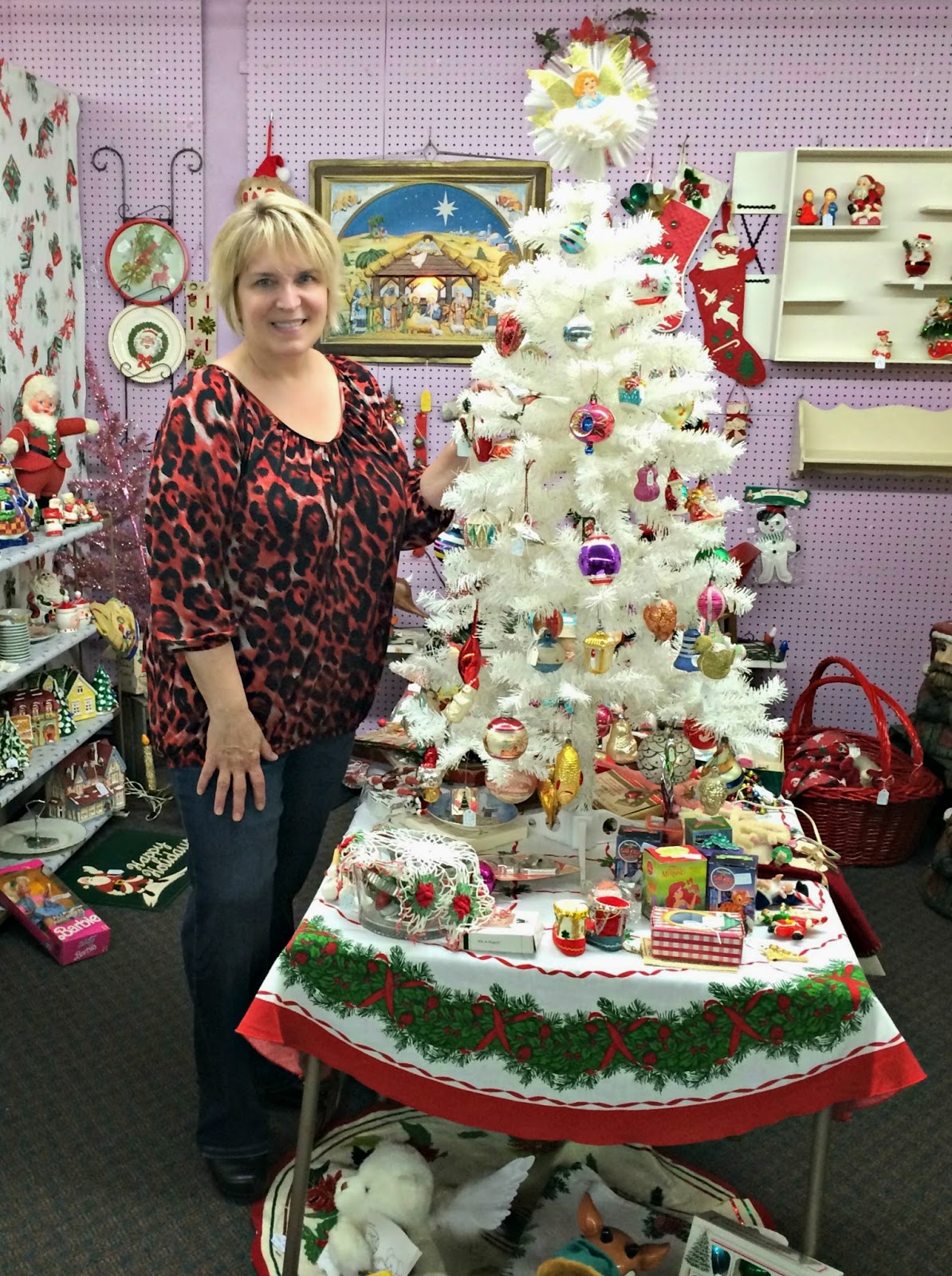 One of my favorite things to do this time of year is search for Christmas kitsch in the antique shops and listen to the vintage holiday music they play.