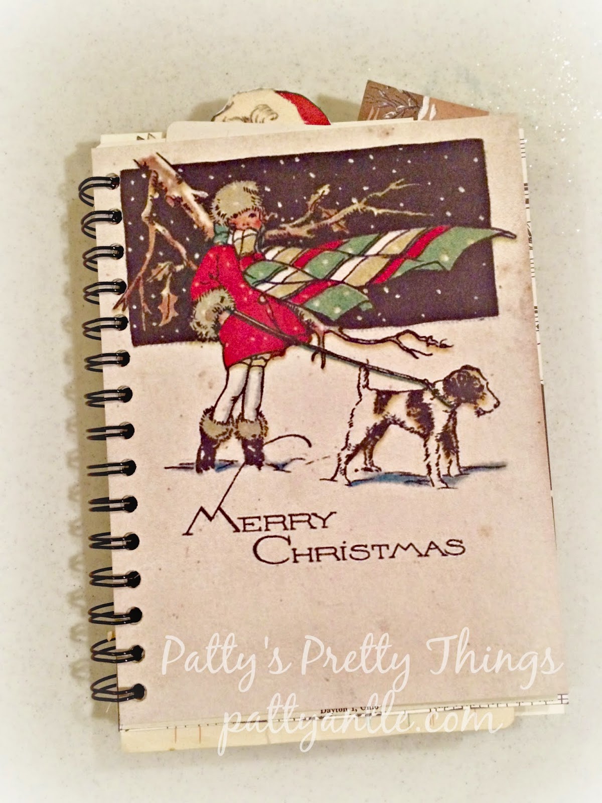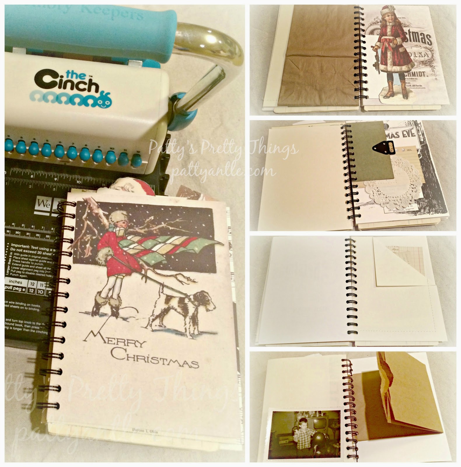 And finally, I put together a vintage Christmas junk journal. As a member of the Junk Journal Junkies on Facebook, I have been greatly inspired with the Christmas journals the members have shared there. I printed off many of my favorite images, added envelopes, paper and other embellishments and bound it together with my Cinch machine.