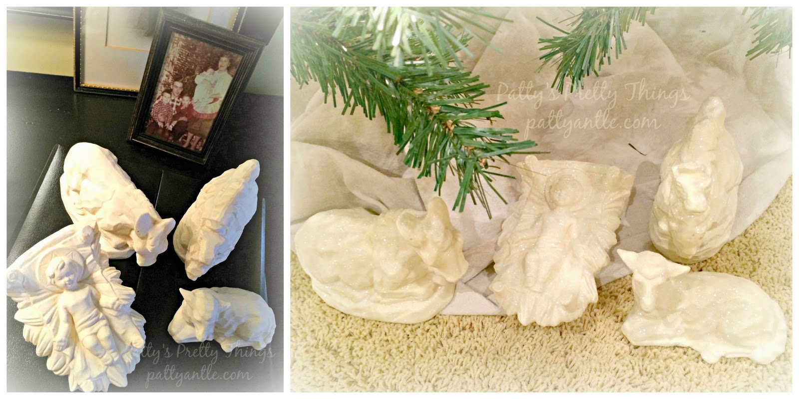 With the thought of sugaring Santa, I decided to also sugar my nativity set I showed you here. I LOVE how the pieces sparkle now under the tree each time I walk by it.