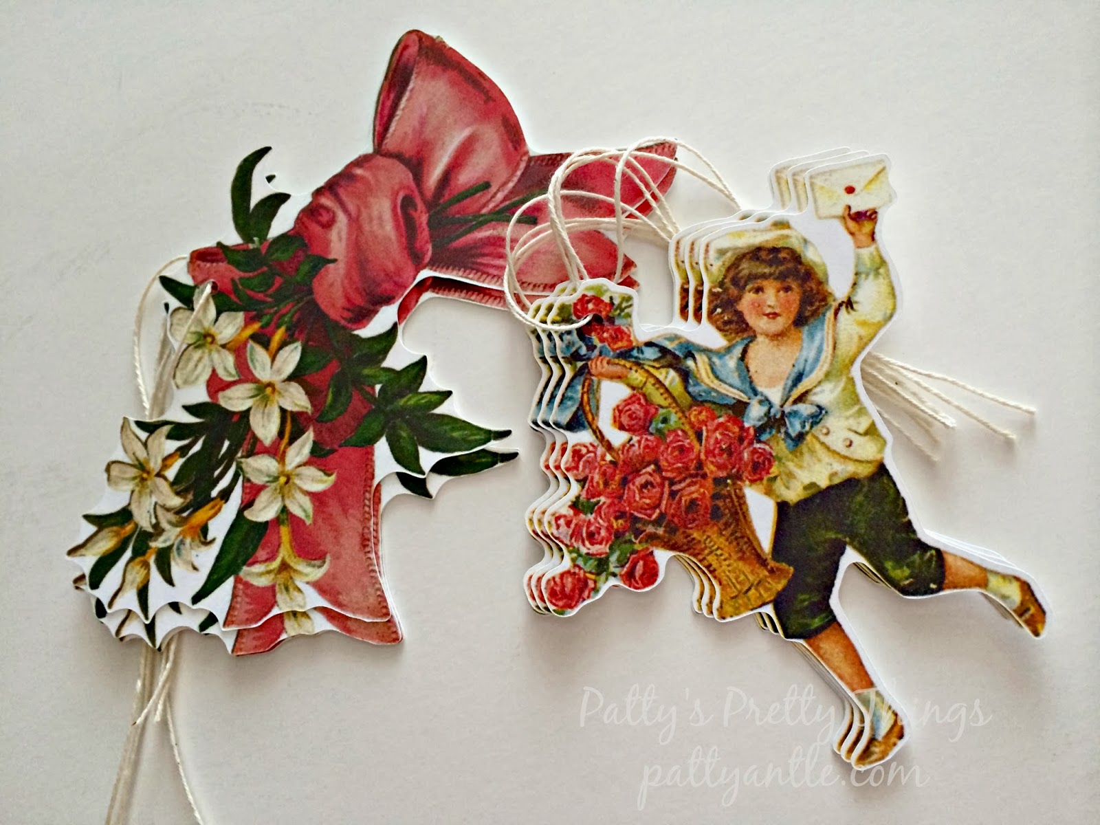 Valentine's Day tags cut out with my electronic cutting machine, courtesy of The Graphics Fairy blog.