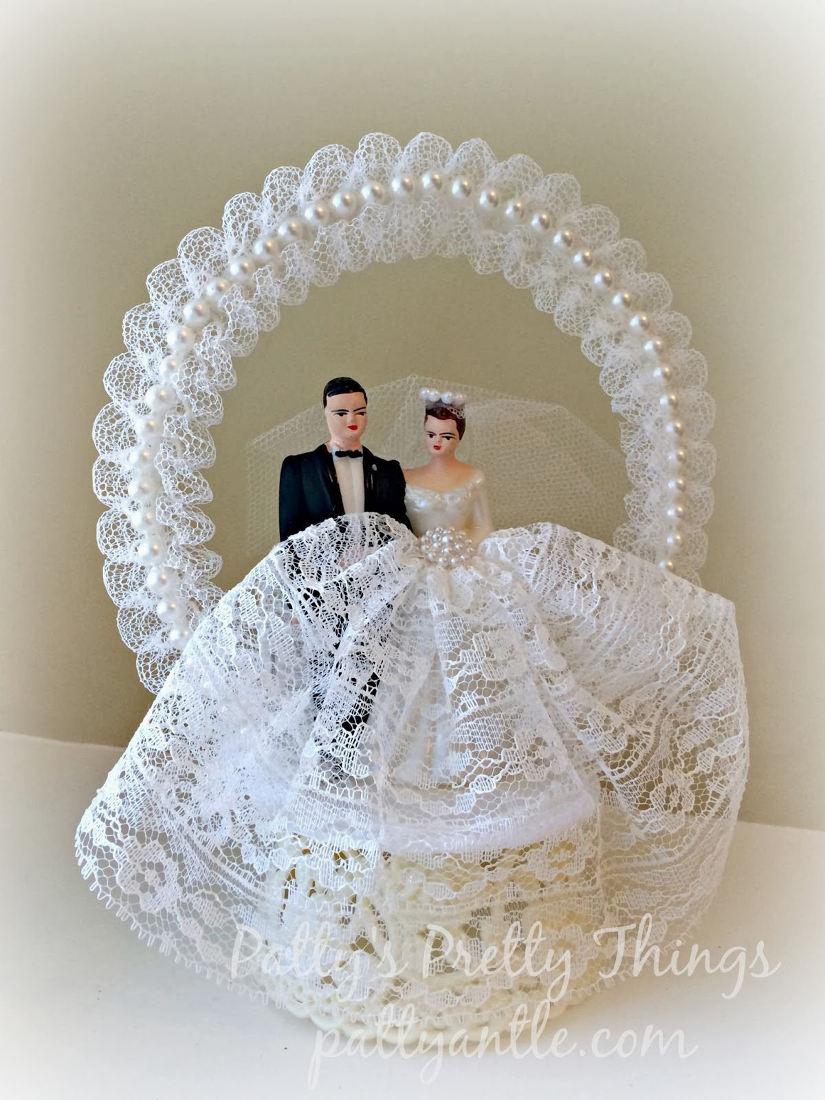 I had been keeping my eyes open for a vintage wedding cake topper and finally found one. It was in its original box and had never been opened! It is so fresh and crisp and white. I love it and what a great find!
