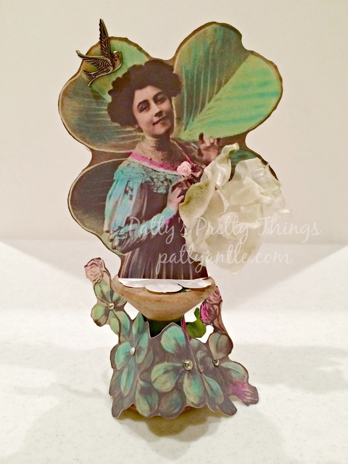 I had so much fun making a Valentine's Day spoolie for a swap that I just had to make one for St. Patrick's Day too. This is one lucky lady surrounded by an abundance of four leaf clovers.