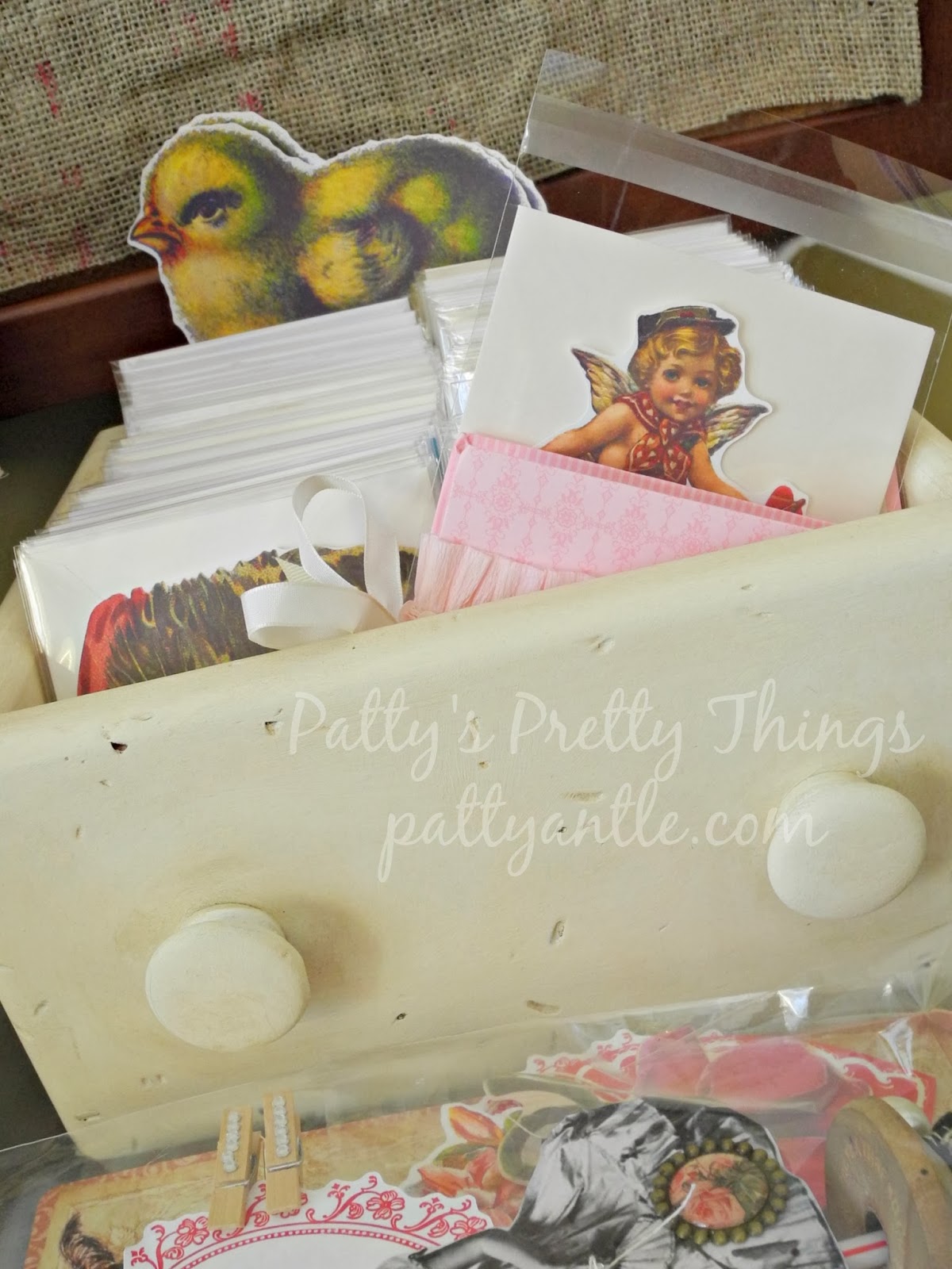 I got a sample container of Maison Blanche Vanille to see if it was a color that I liked. I was inspired to paint this little wooden drawer. It belonged to a bookshelf Ashleigh took with her. She didn't want it so I figured it could hold things in my creative space. Actually, I have two of them.