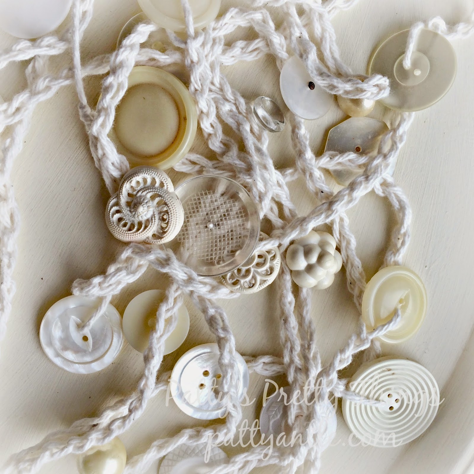 4. I am always on the lookout for interesting things to do with my vintage buttons. I found this idea to crochet them into a garland here. The garland can be used for many things such as stringing them onto a Christmas tree, as a decoration for a gift, or even to wrap around the lampshade as I did in the photo below.