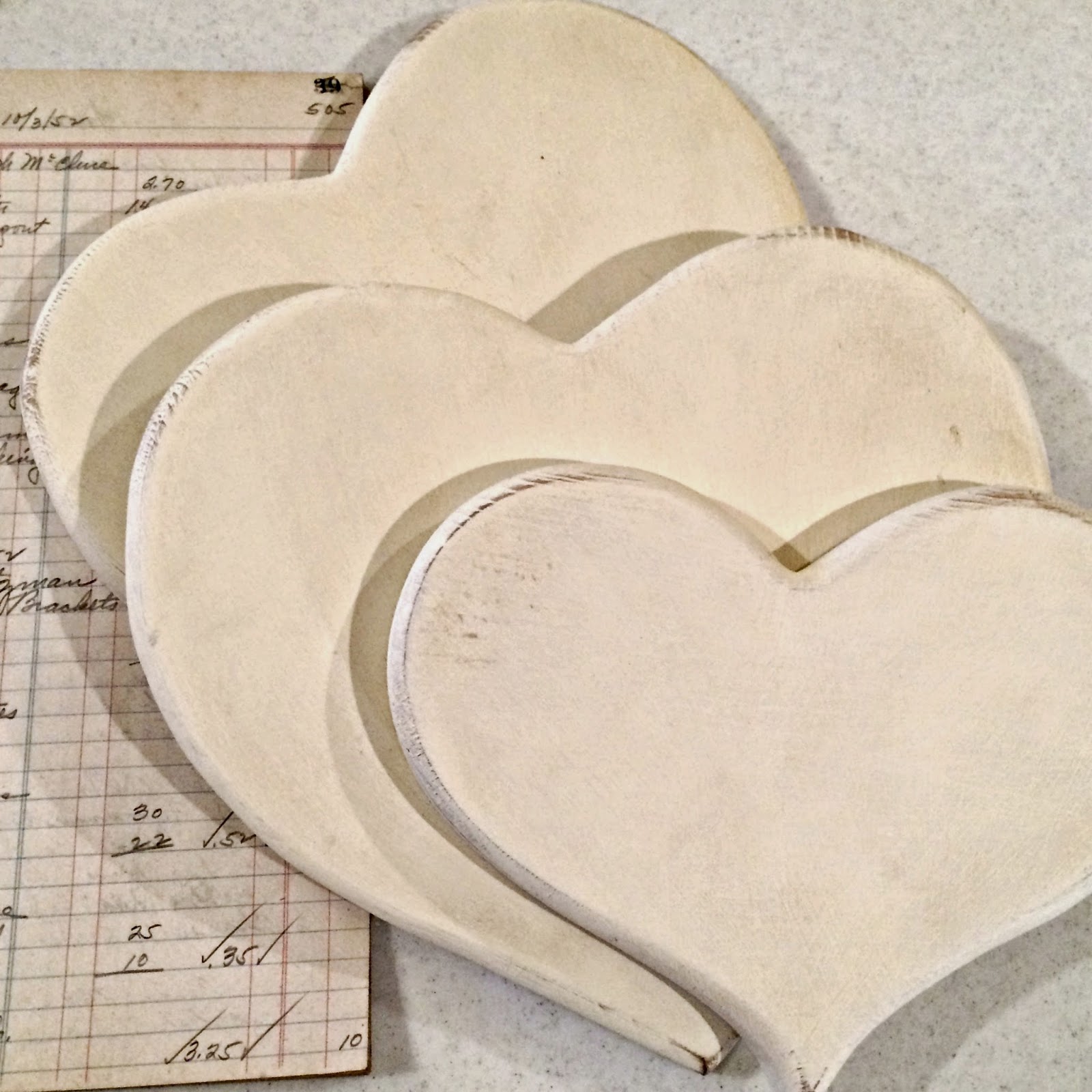I had found these wooden hearts at a garage sale last summer for a quarter each and painted them for a future project. I love when that happens!