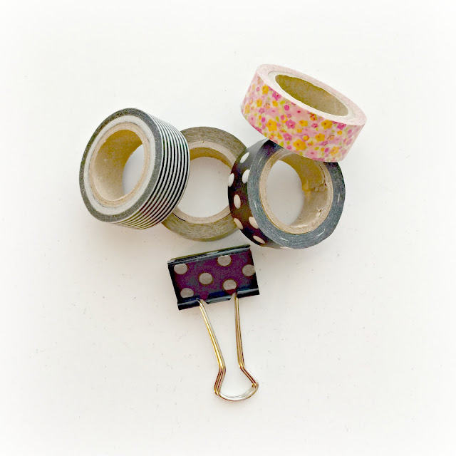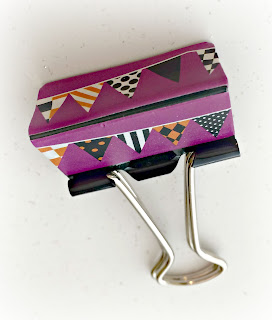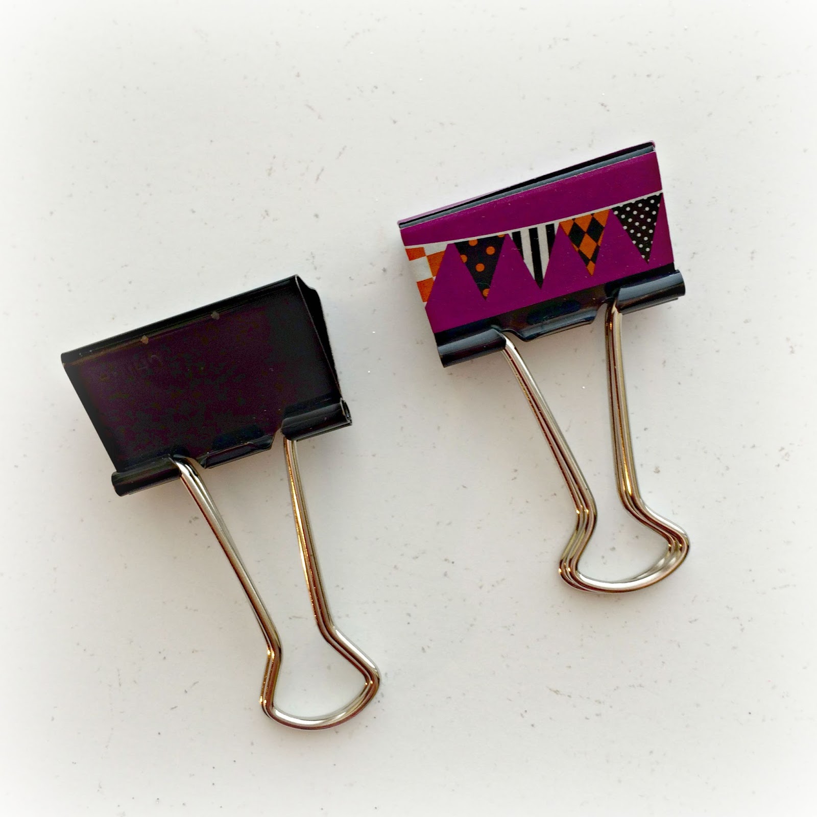 When I attended the Calendar Planner Girl class a few weeks ago that I mentioned here, we made a little craft. It entailed applying Washi tape to black binder clips. It was a fun and simple project that came out great!