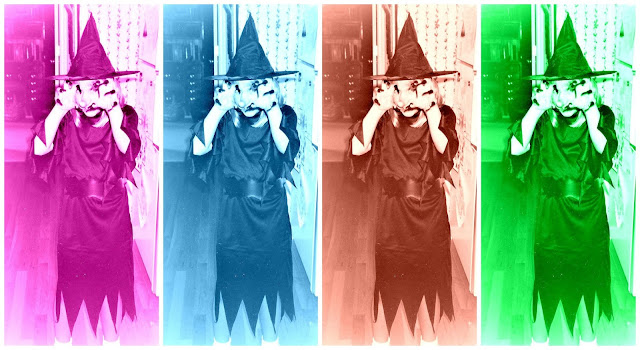 And finally, after searching for an old Halloween family photo, I decided to play with the special effects of PicMonkey. This is our adorable daughter when she was in grade school ready for a trick or treating adventure!