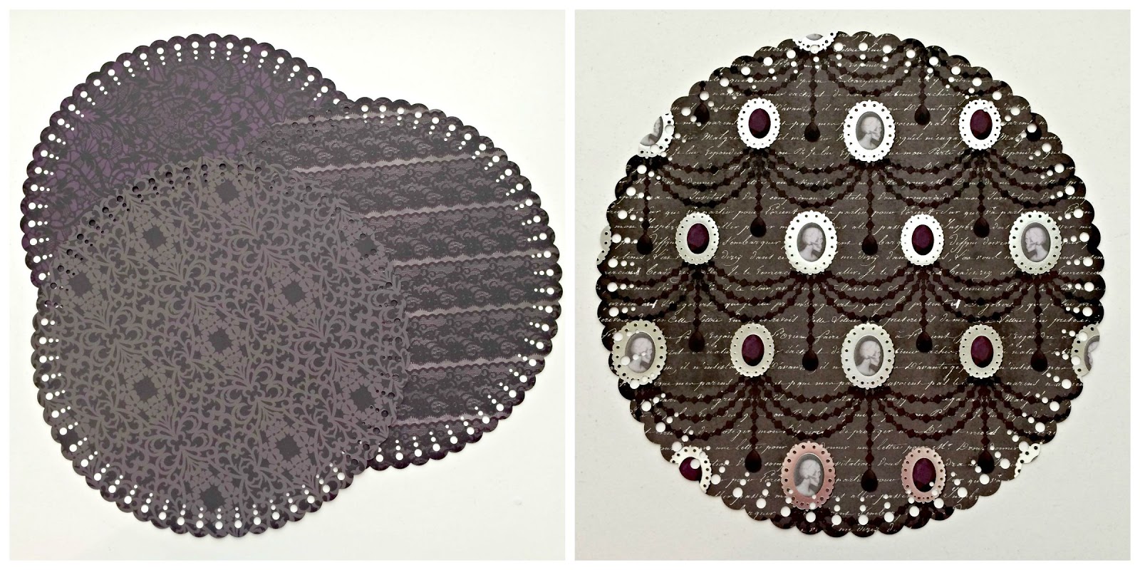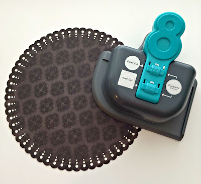 My friend, Anita, let me borrow this amazing Lucky 8 doily punch manufactured by We R Memory Keepers. I searched the Internet and it doesn't look like it is still currently for sale, sorry. But I had a great time playing with it, making doilies out of my Halloween cardstock.