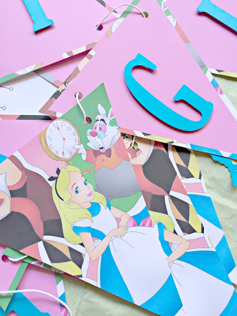 For the Alice in Wonderland banner, I cut pieces from a children's book