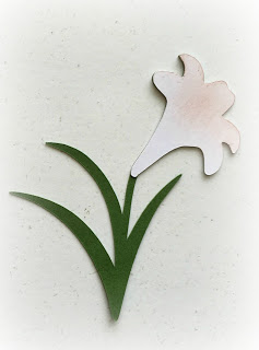 With our swaps, we practice what we learned from our previous class. So since last month we dabbled in stencils, die cuts and stamps, that's what we did. Here's my creation. After cutting lilies with my Cameo, I decided they would be the perfect size for my ATCs. The lilies have a green base, and a second piece (the flower I cut from white cardstock) adhered to it with glue dots. The flower was sponged with ink.
