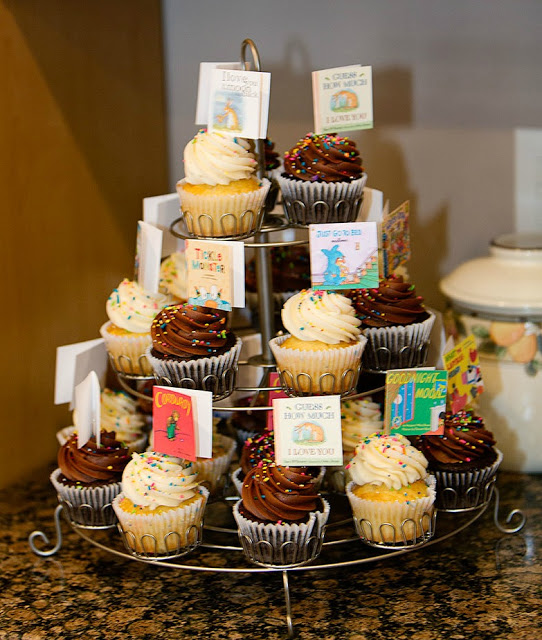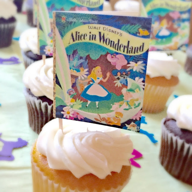 I was recently asked to make decorations for two baby showers. The interesting thing was that their themes were quite similar. One had an Alice in Wonderland theme, and the other theme was a children's storybook. The three items I made for each party were a banner, cupcake toppers and confetti for the table.