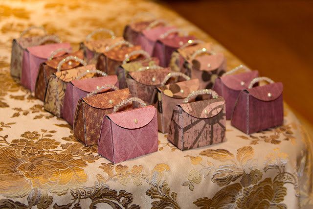 She asked me to make these little purses to use as party favors. They were cut from a Martha Stewart template.