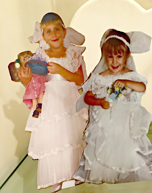 With the Cameo, I printed and cut photos of Ashleigh playing bride as a child. I used heavy cardstock for both the photos and easels (also cut via Cameo) that were attached to the backs for support.