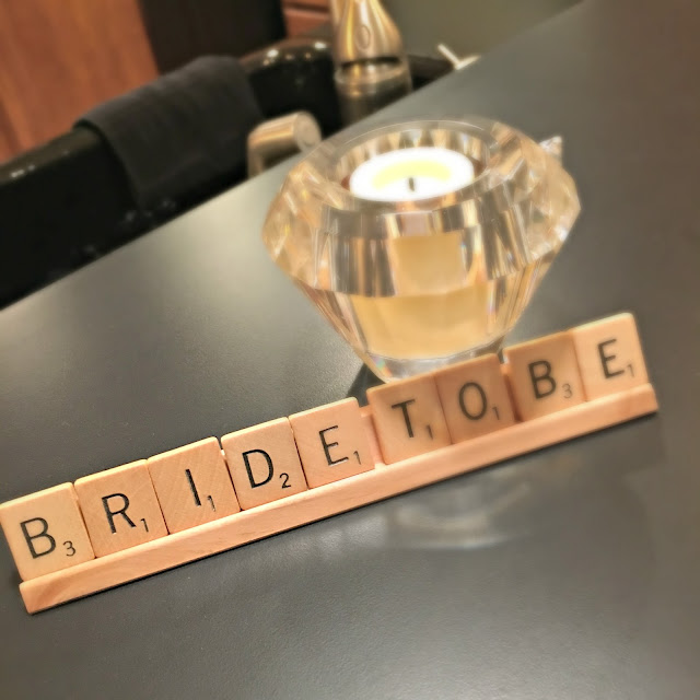 We played "count the buttons in the jar" where everyone wrote their guesses on round button cards that were cut via my Cameo. The winner guessed 1200 buttons which was less than the actual 1431 buttons in the jar. Yes, I counted each and every button before the shower! The other game we played was the ring game. Everyone starts with one ring and if they are caught saying the word "bride", their ring can get snatched by another guest.
