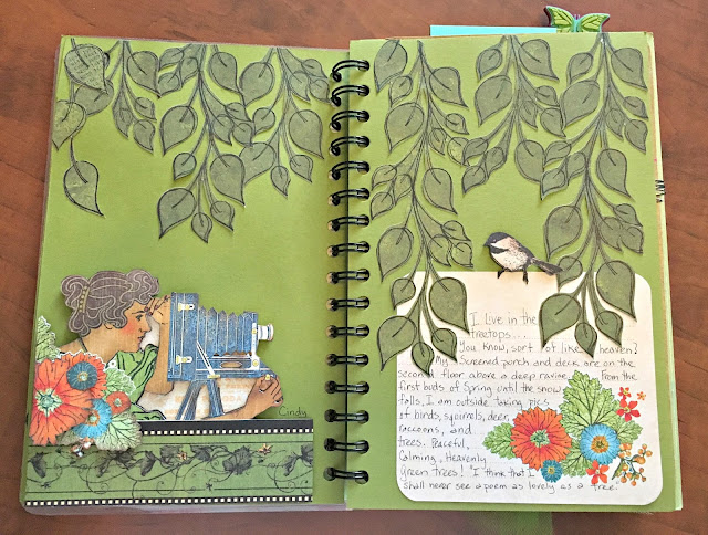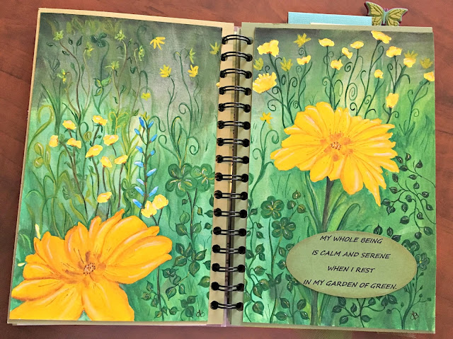My journal, which has the theme "Green," is now complete. I wanted to share it with you to possibly offer some ideas in case you would like to do this with your own group.