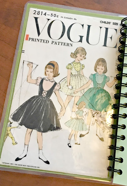 A vintage Vogue 1957 pattern envelope with girls in green dresses graces the inside cover. It's copyright was when I was one year old. My how pattern prices have changed. A similar pattern may cost $15 - $20 today.