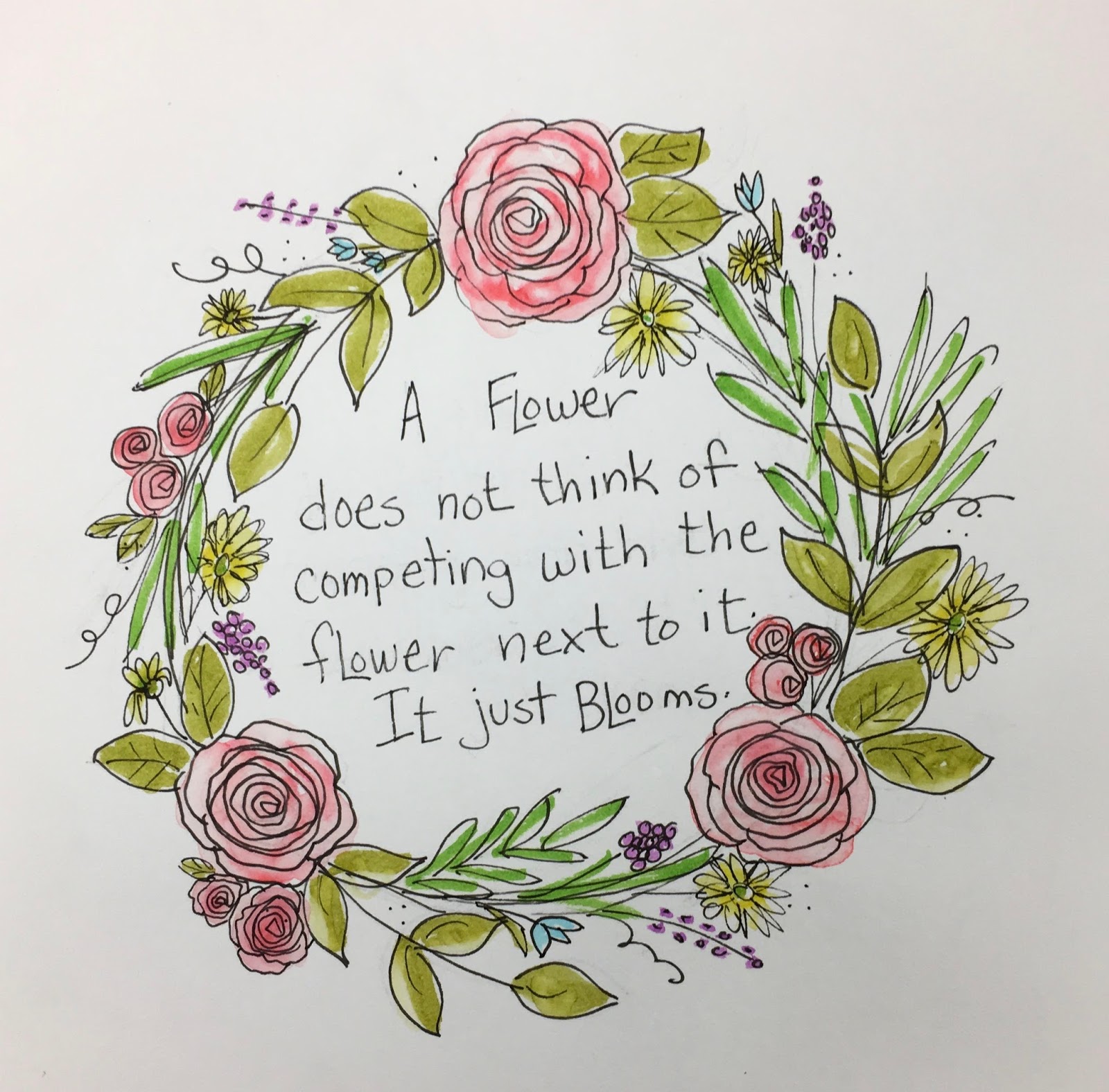 We used these markers that are only for watercolor paper. We blended the colors with the water pen below. We used a black artist pen to draw the flowers freehanded.