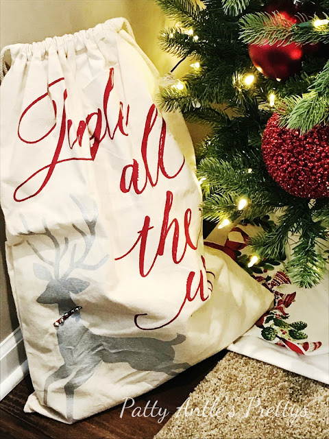 One of my new finds is this Santa bag from the Home Goods store. It was difficult to choose a design as there was a fabulous assortment of them there.
