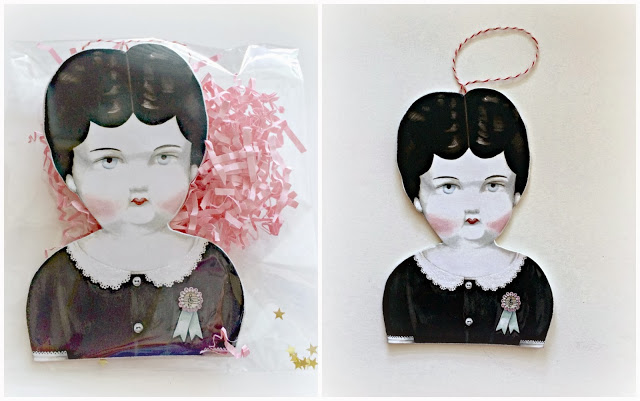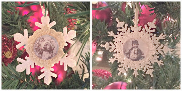 The snowflake on the left was included in the Little Pink Studio's November Little Pink Box. Instructions for making it were on the blog which included the photo of the vintage girl on the right. I was happy to have all the materials I needed to make one myself!